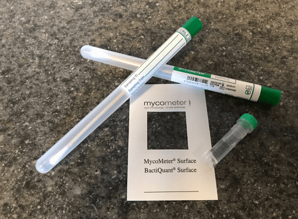 Afrensning af en inficeret overflade afsluttes først, når Pro-clean testen viser 0. Mycometer®-test – foretages på stedet og giver resultat på mindre end én time. Prøven kan tages på overflader. Herudover kan materialer som isolering, puds og støv analyseres.
